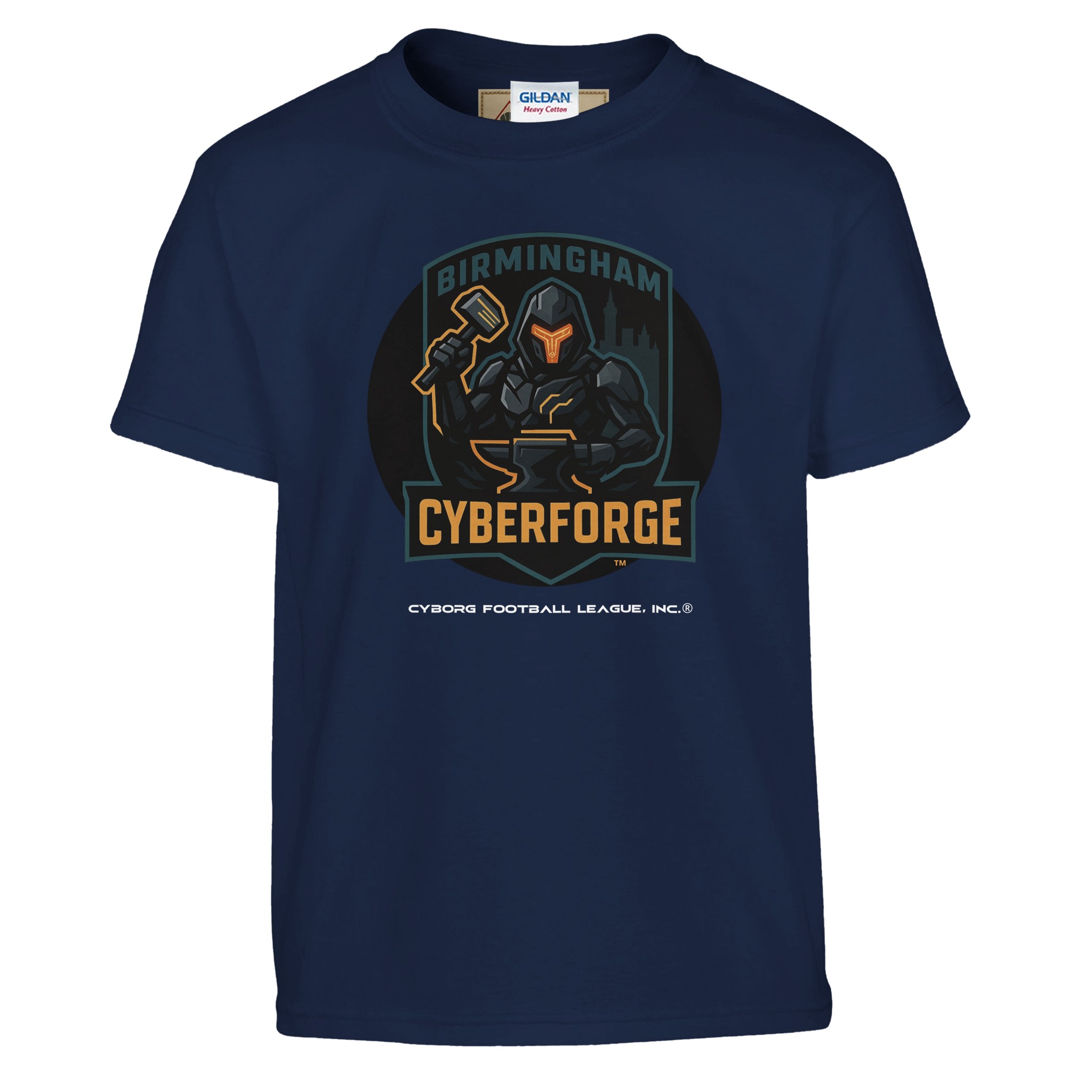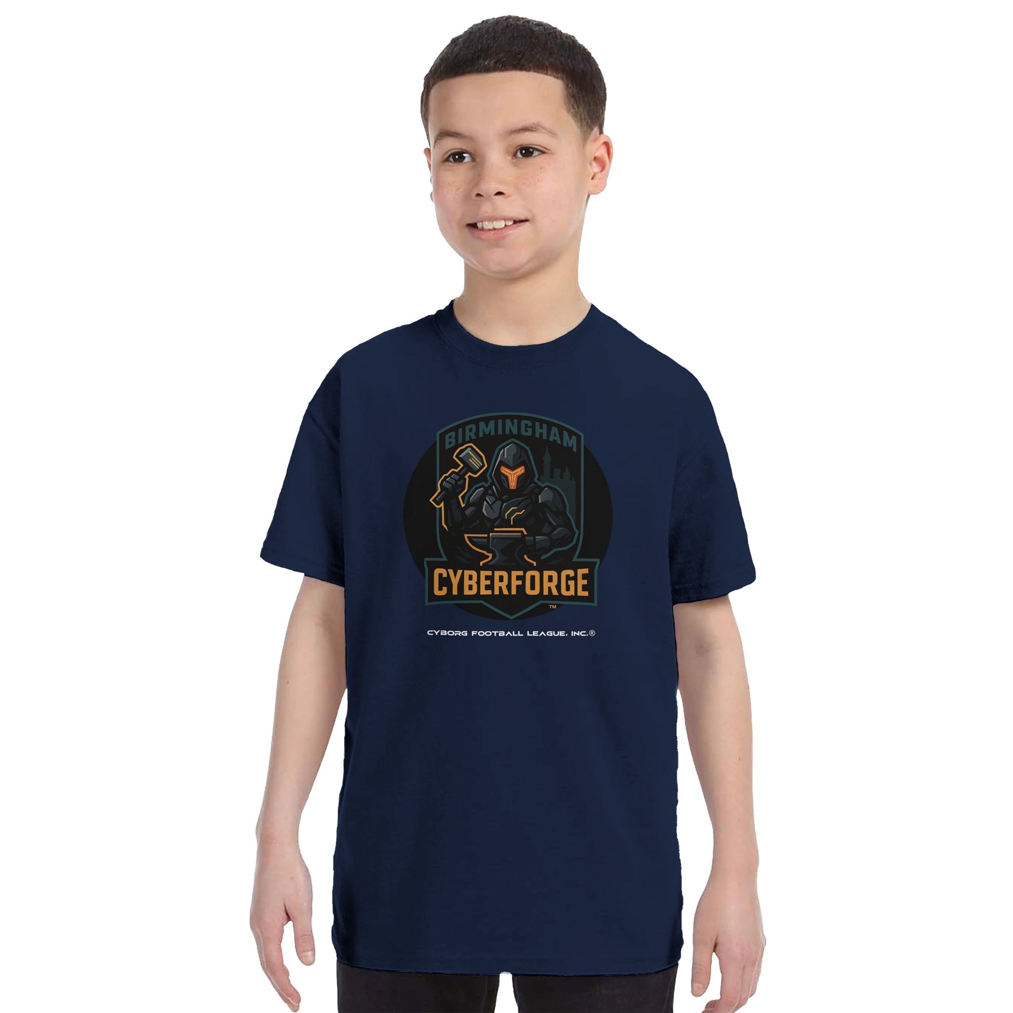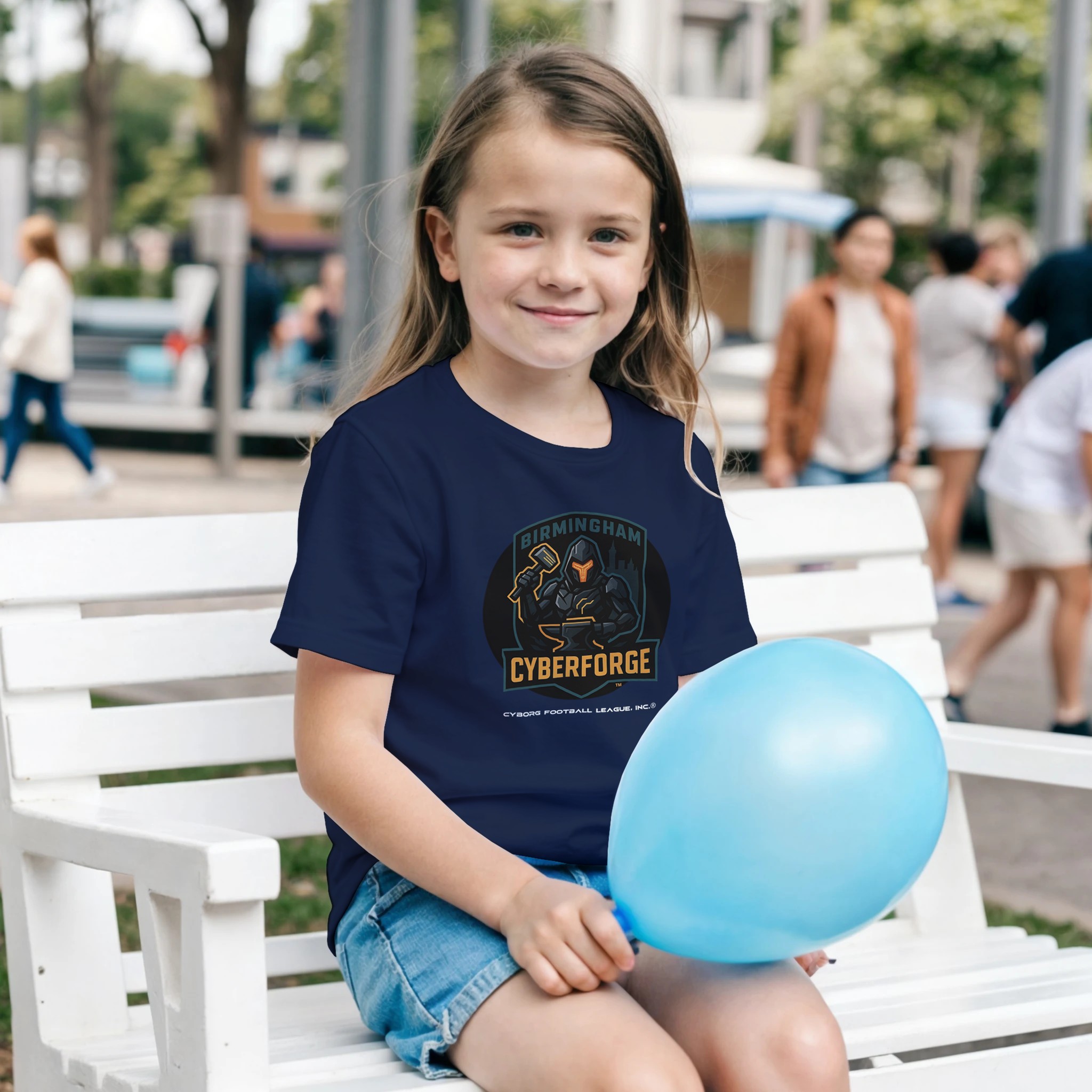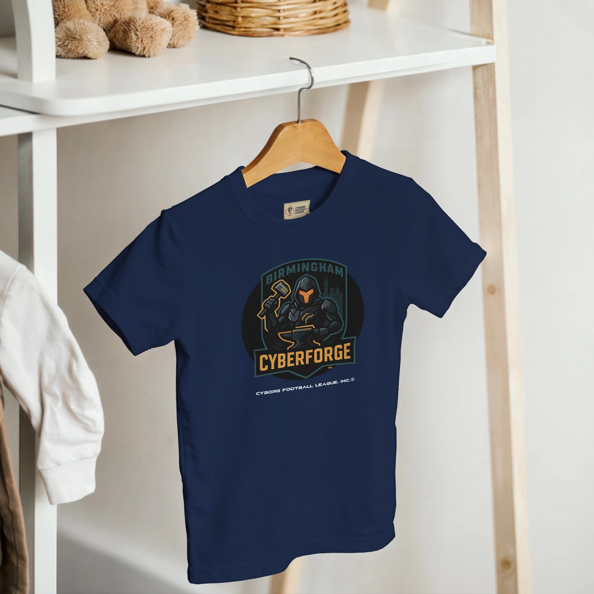 A bold kids tee featuring the Birmingham Cyberforge™ emblem—built for young fans who play hard, think fast, and rep CyborgFL with pride.
