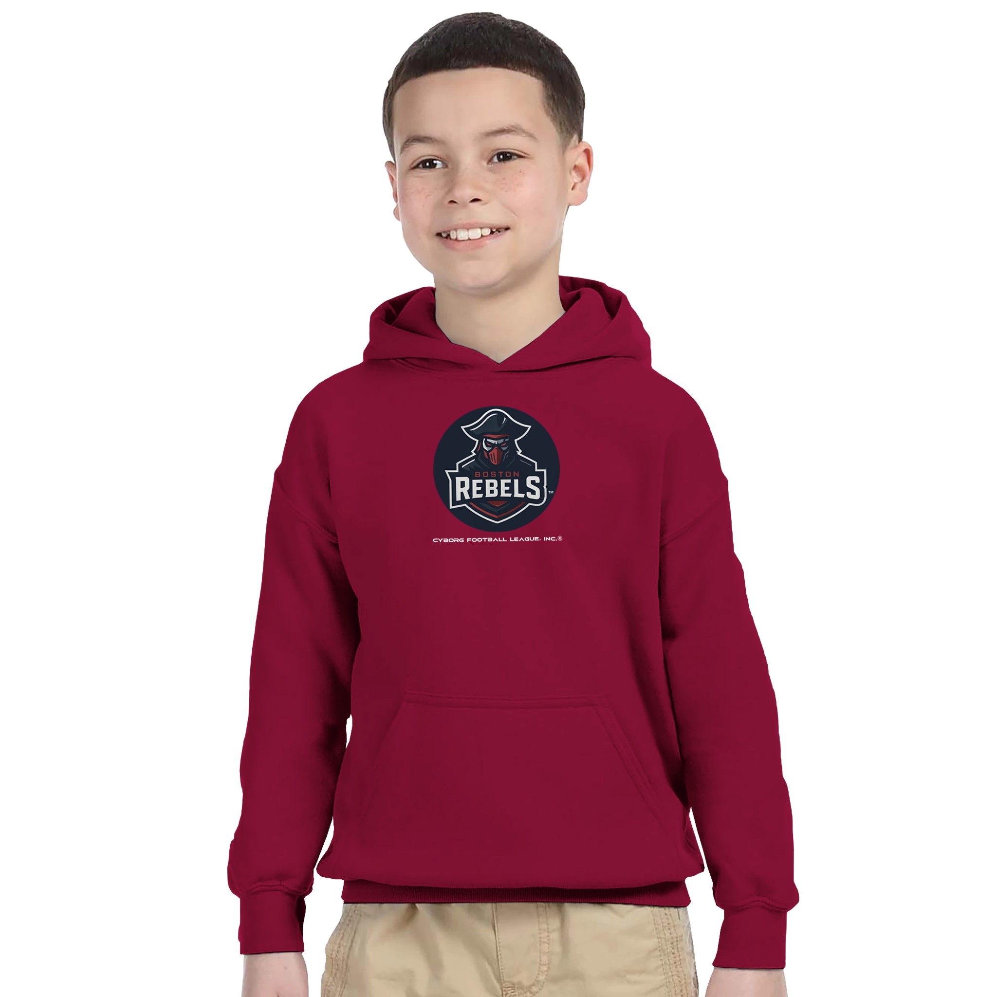 A bold, comfortable kids hoodie featuring the iconic Boston Rebels crest. Built for everyday wear, school days, and game nights—this hoodie lets young fans rep rebellion, strategy, and CyborgFL pride in comfort.