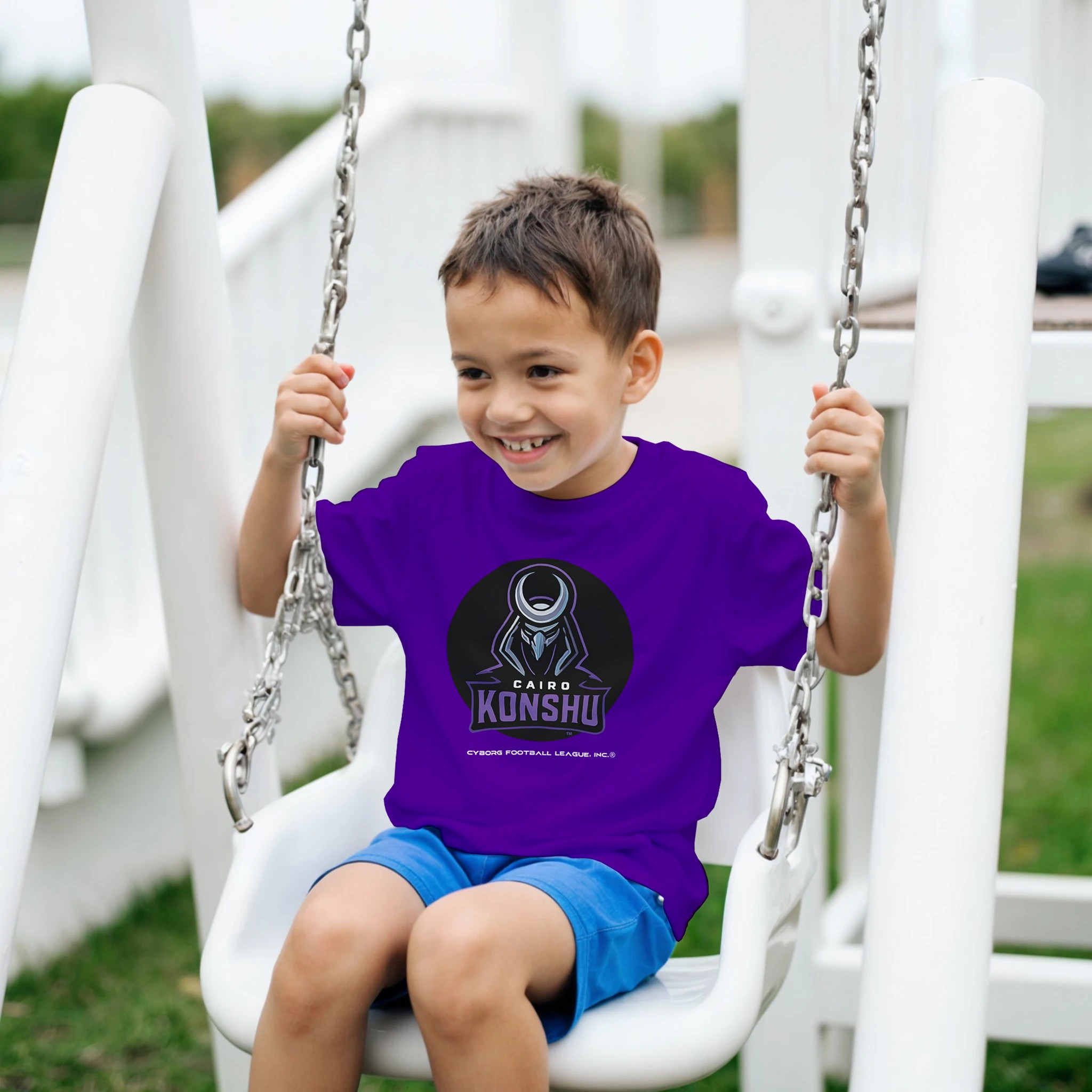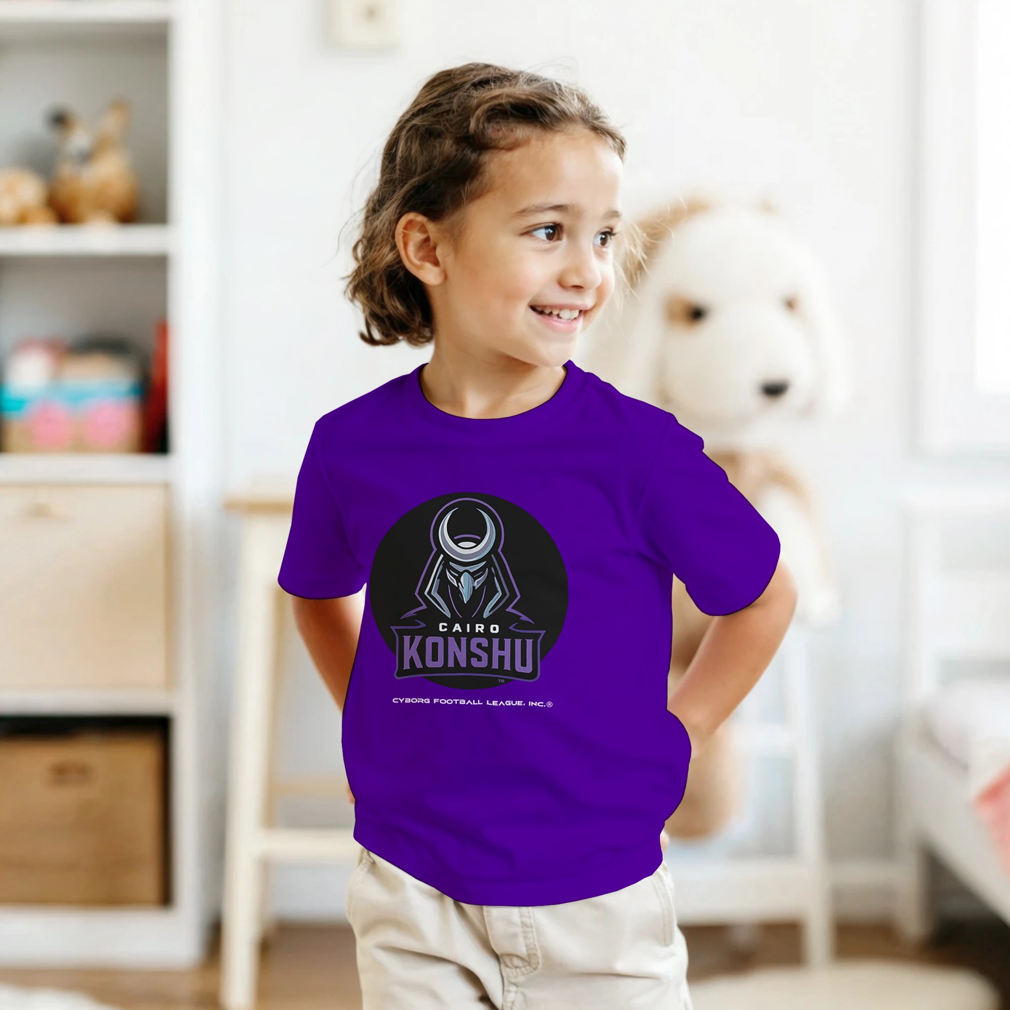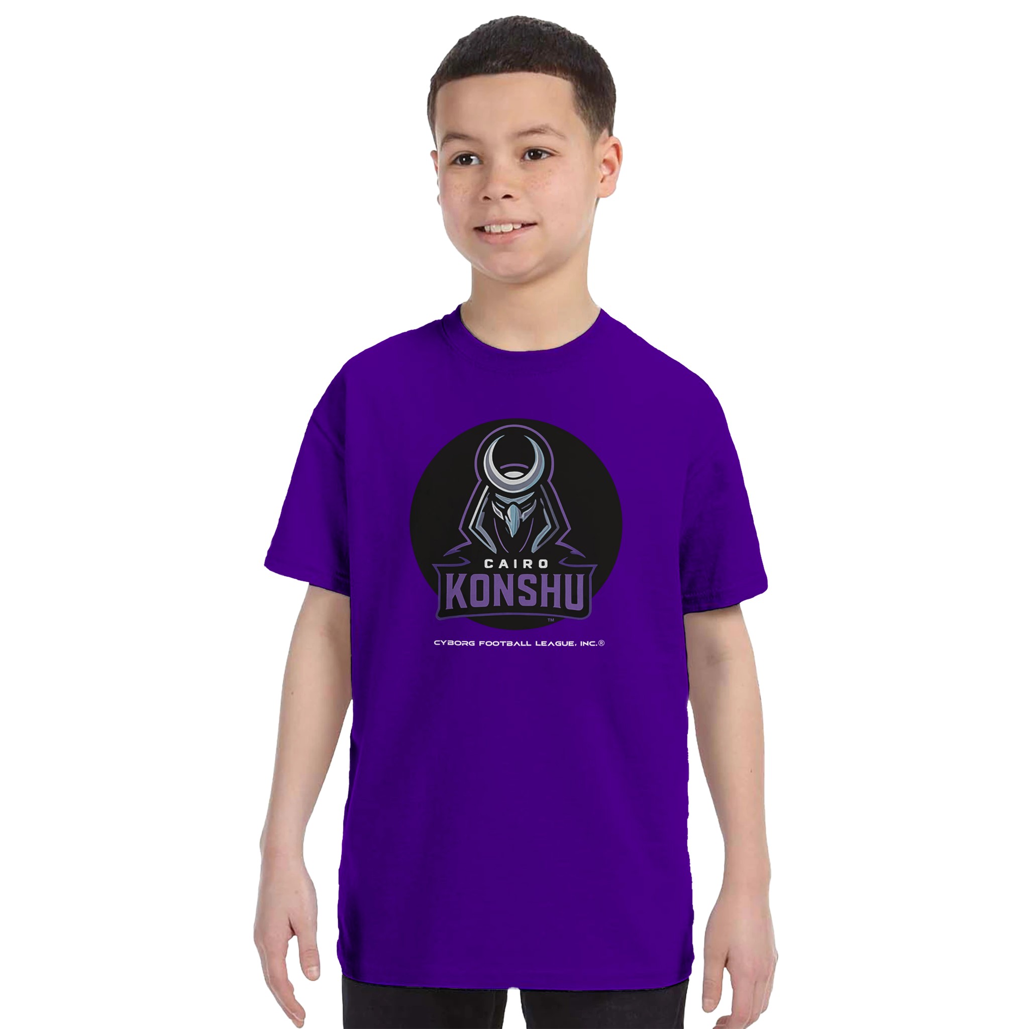 A bold kids tee featuring the Cairo Konshu™ emblem—built for young fans who play hard, think fast, and rep CyborgFL with pride.