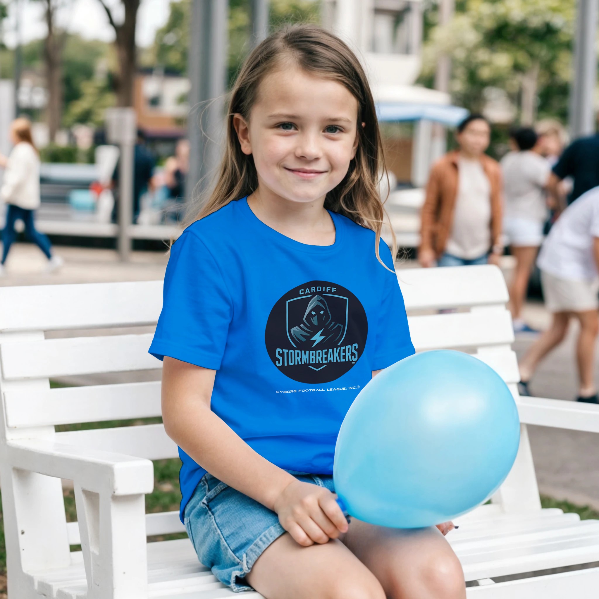 A bold kids tee featuring the Cardiff Stormbreakers™ emblem—built for young fans who play hard, think fast, and rep CyborgFL with pride.