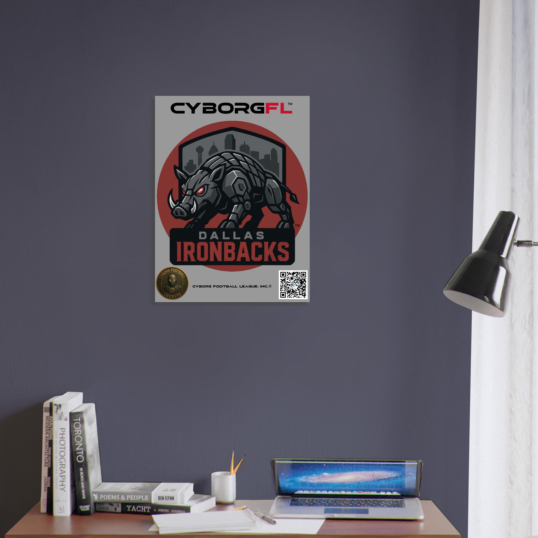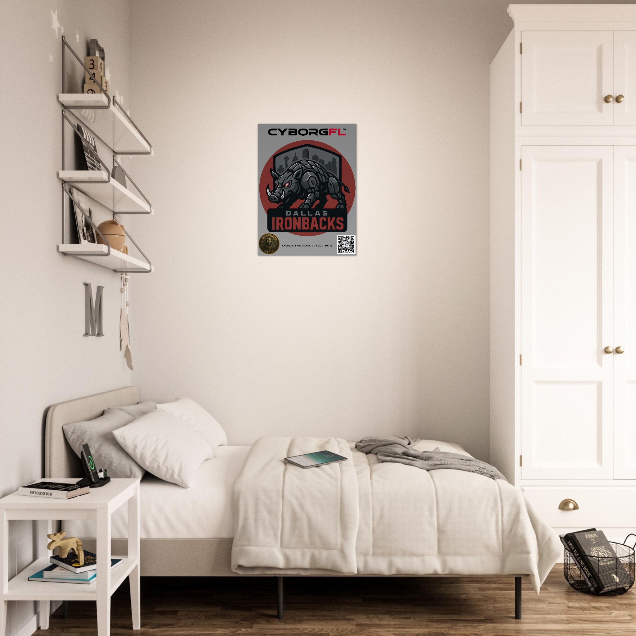 An official CyborgFL™ art poster featuring the seal of the Dallas Ironbacks™ — built for gamers, fans, and next-gen competitors.