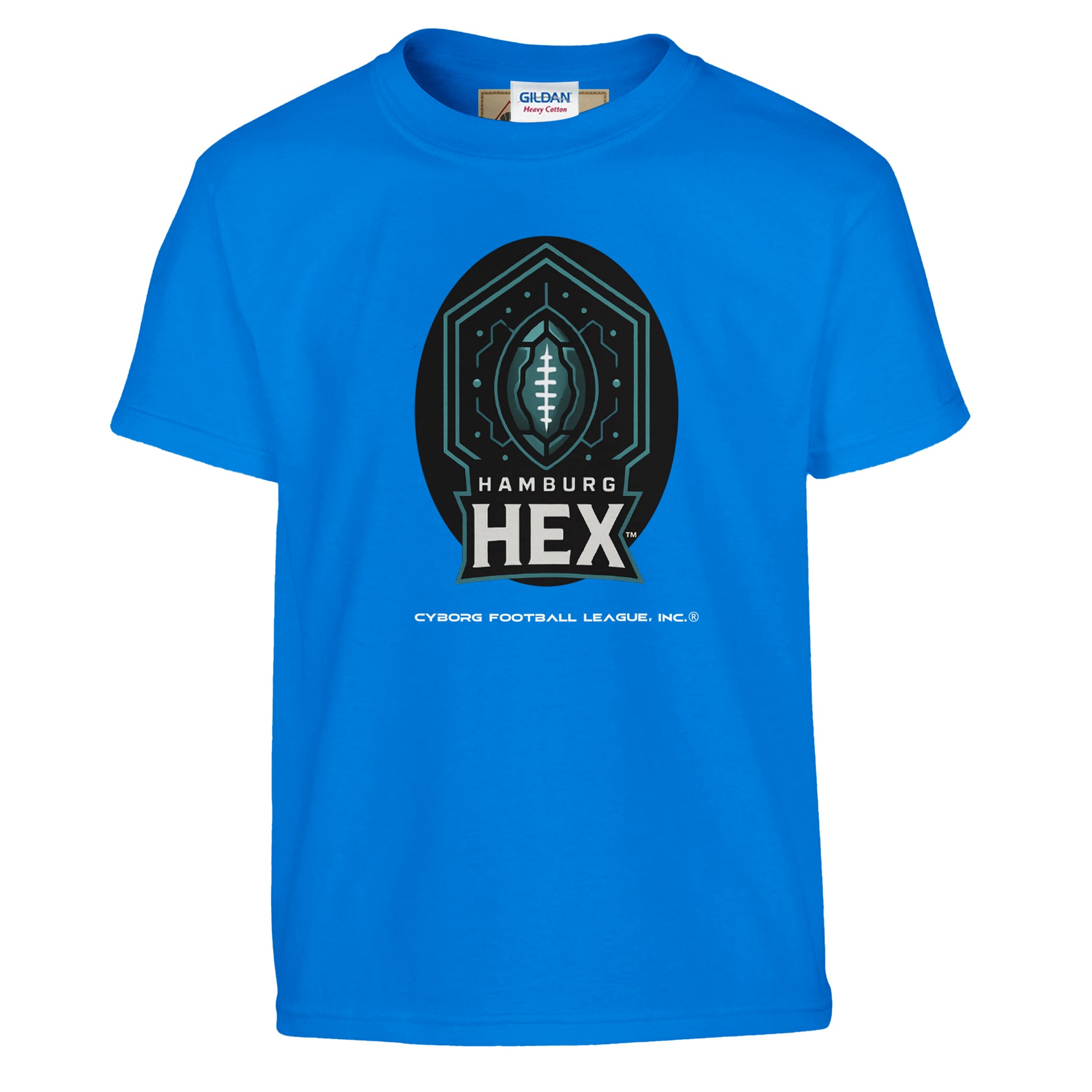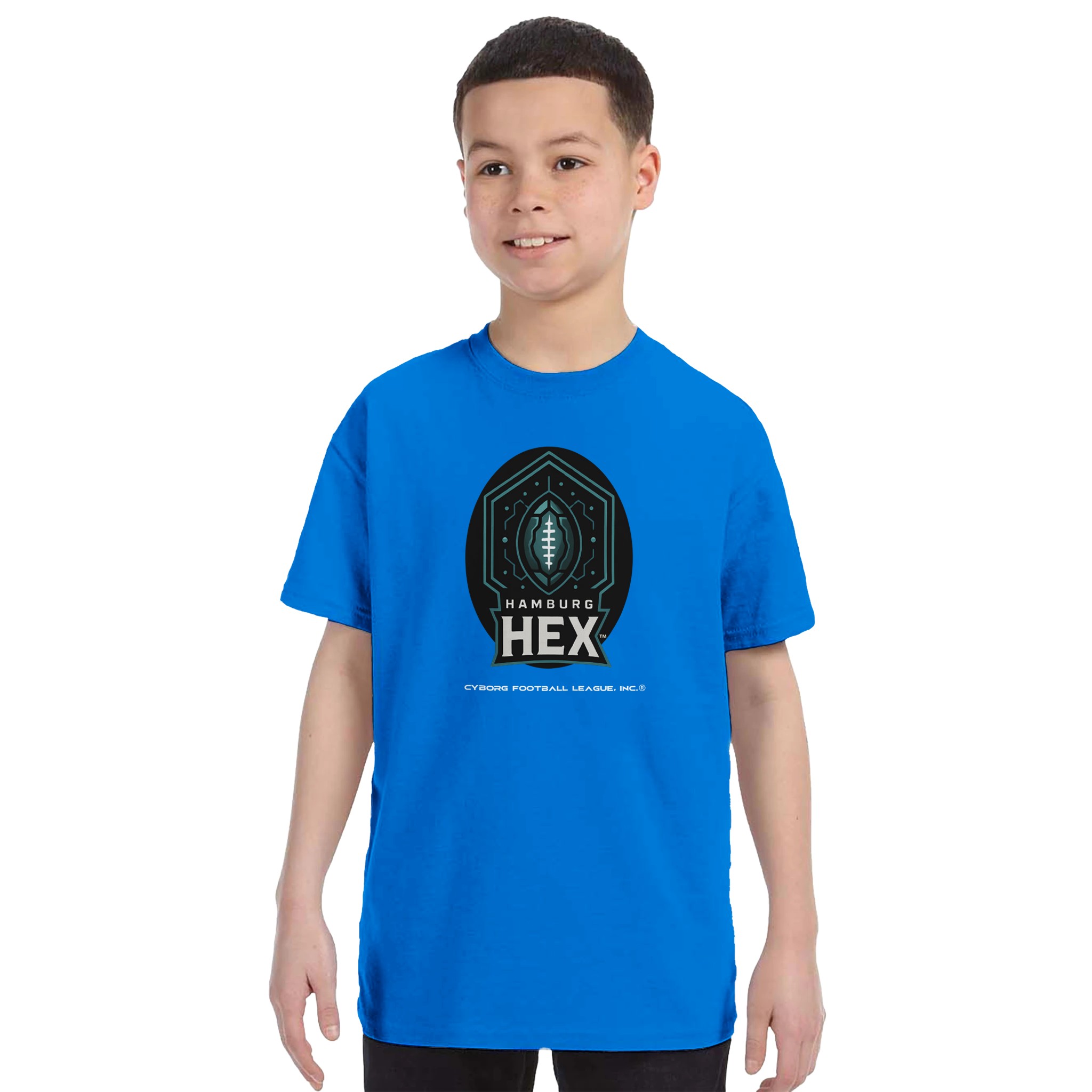 A bold kids tee featuring the Hamburg Hex™ emblem—built for young fans who play hard, think fast, and rep CyborgFL with pride.