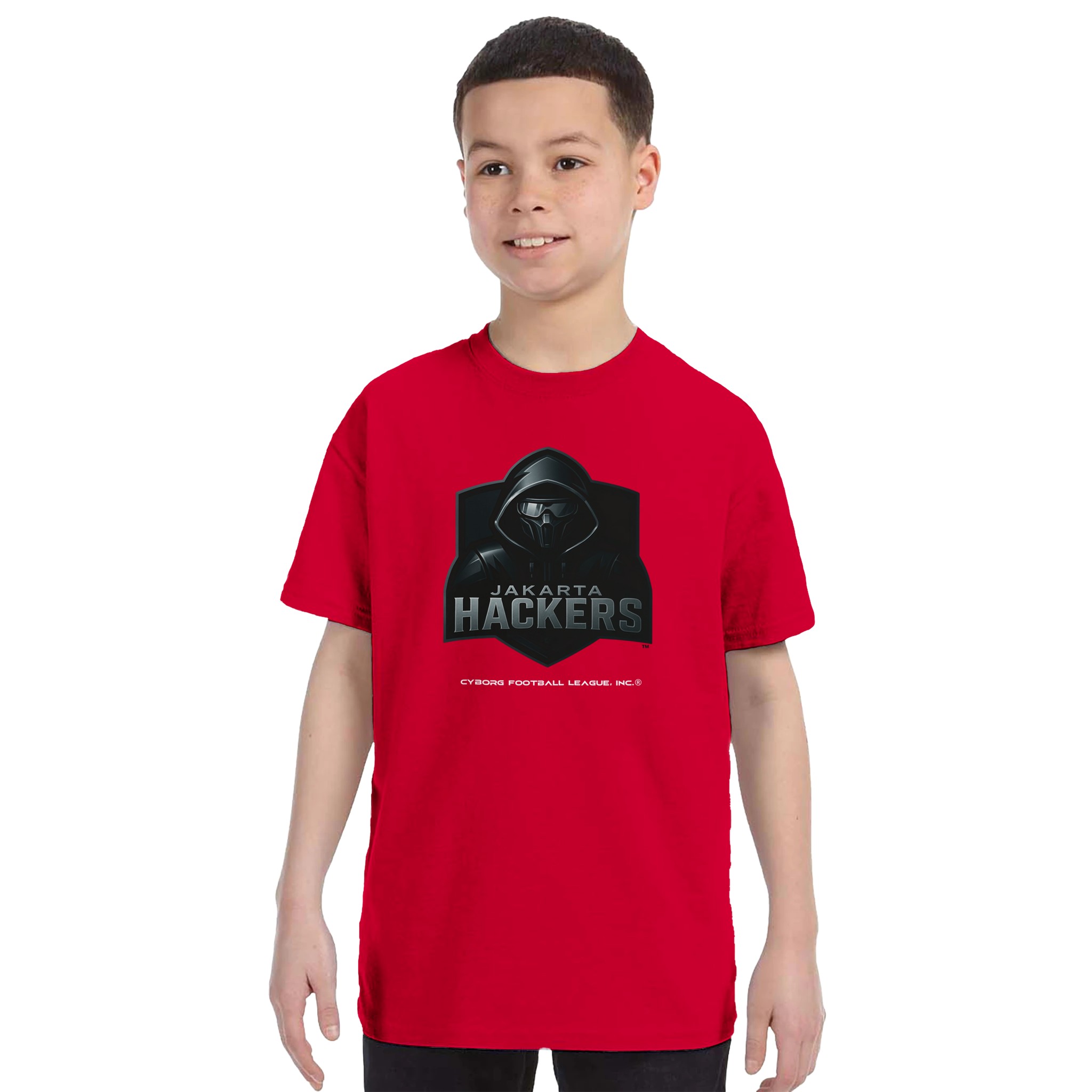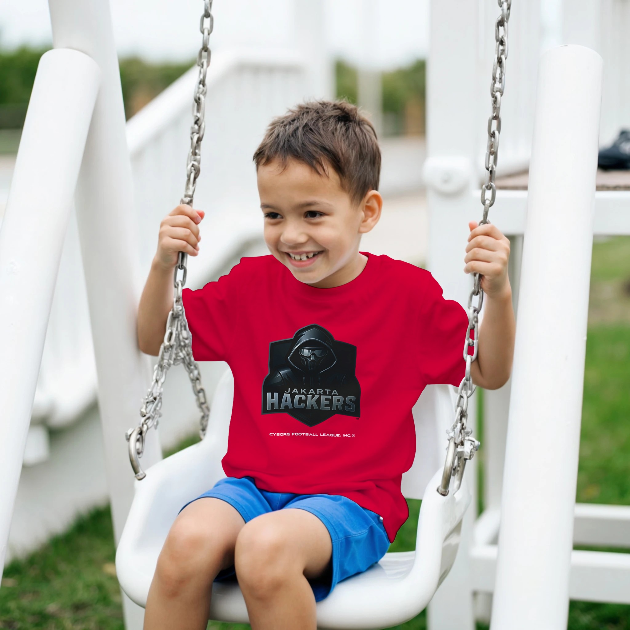 A bold kids tee featuring the Jakarta Hackers™ emblem—built for young fans who play hard, think fast, and rep CyborgFL with pride.