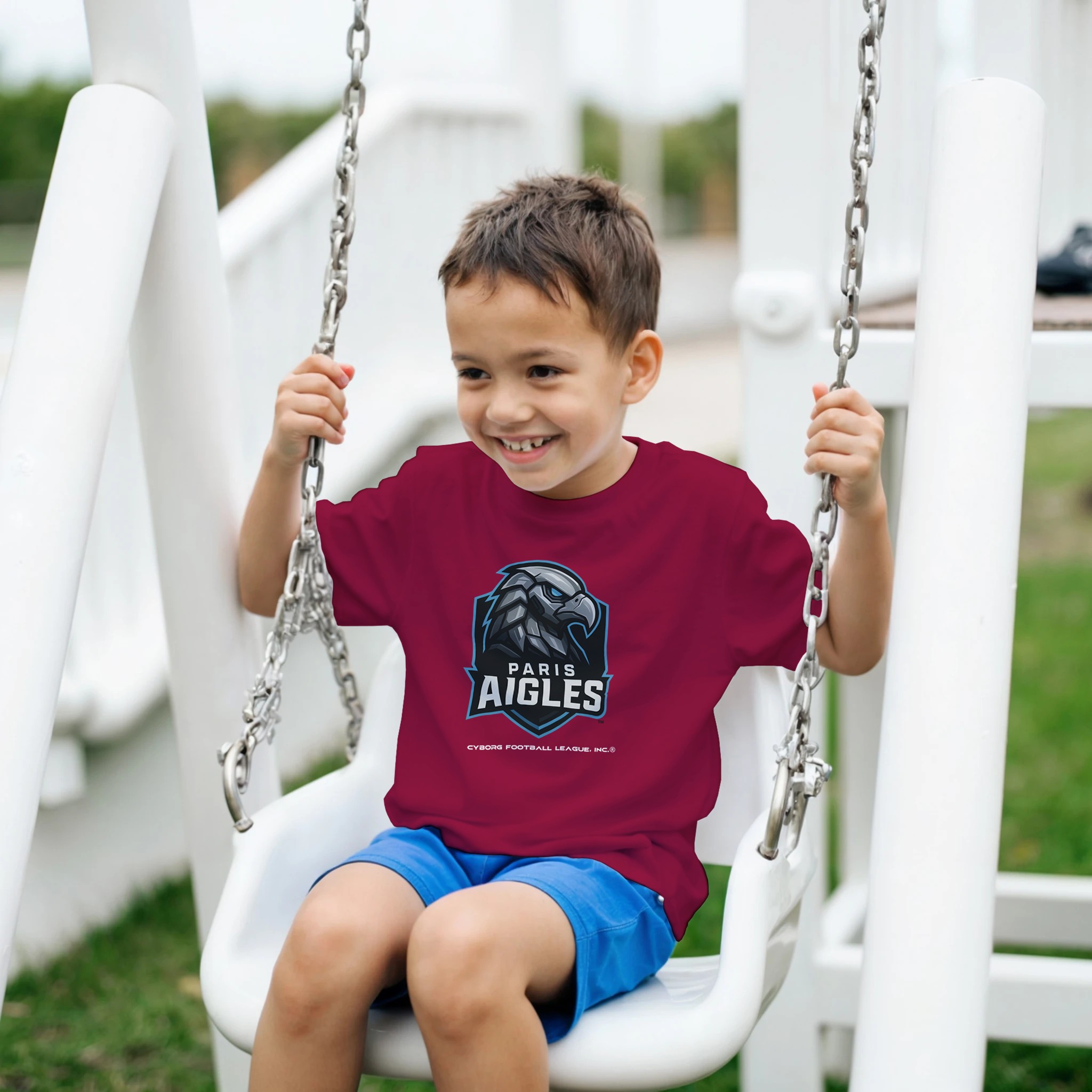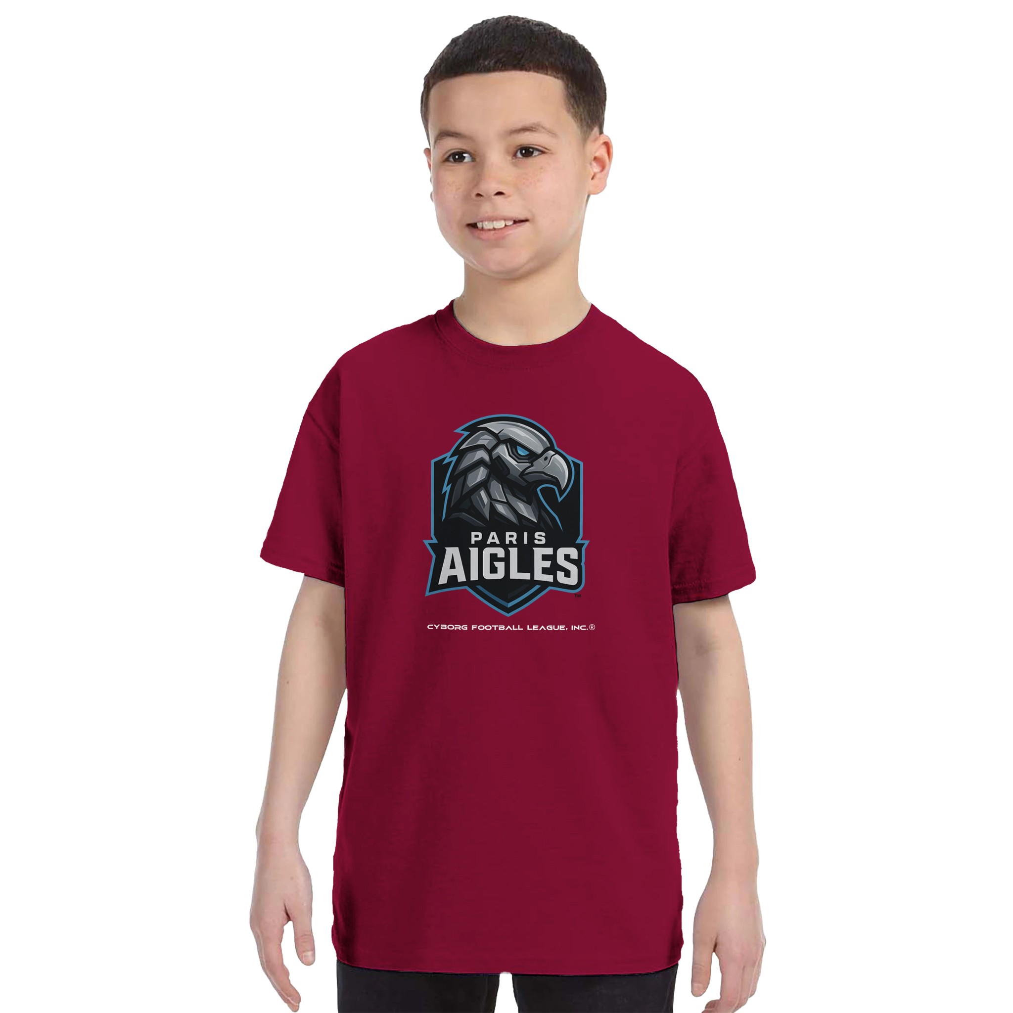 A bold kids tee featuring the Paris Aigles™ emblem—built for young fans who play hard, think fast, and rep CyborgFL with pride.