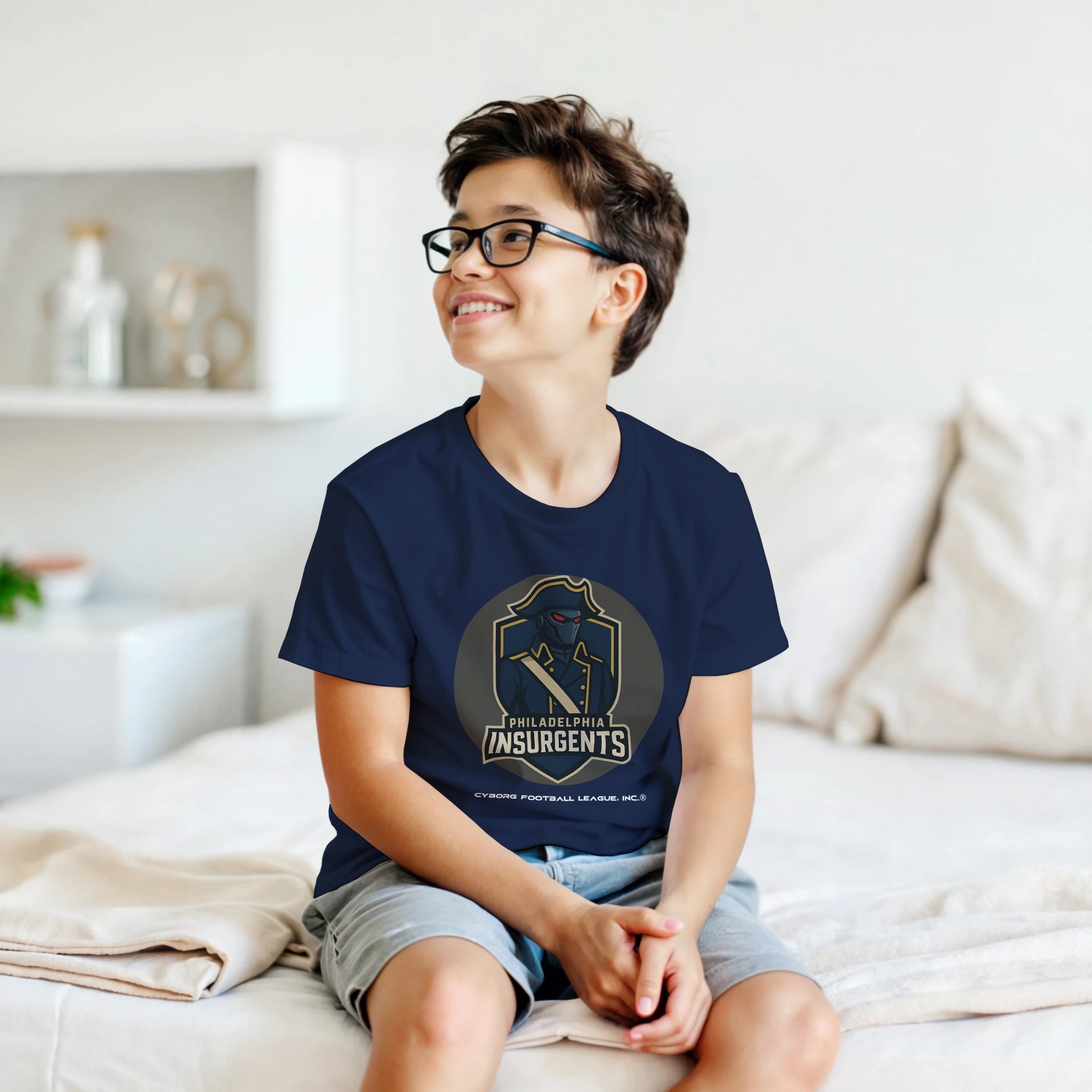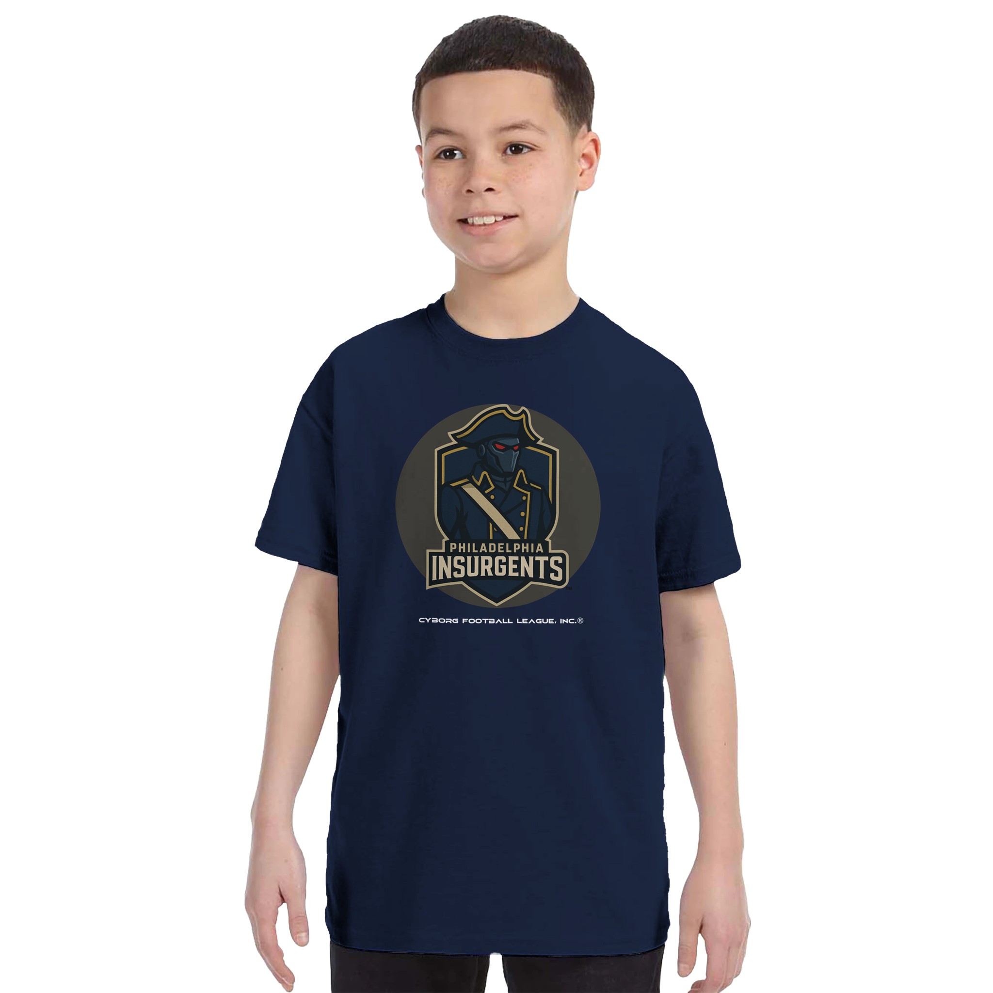 A bold kids tee featuring the Philadelphia Insurgents™ emblem—built for young fans who play hard, think fast, and rep CyborgFL with pride.