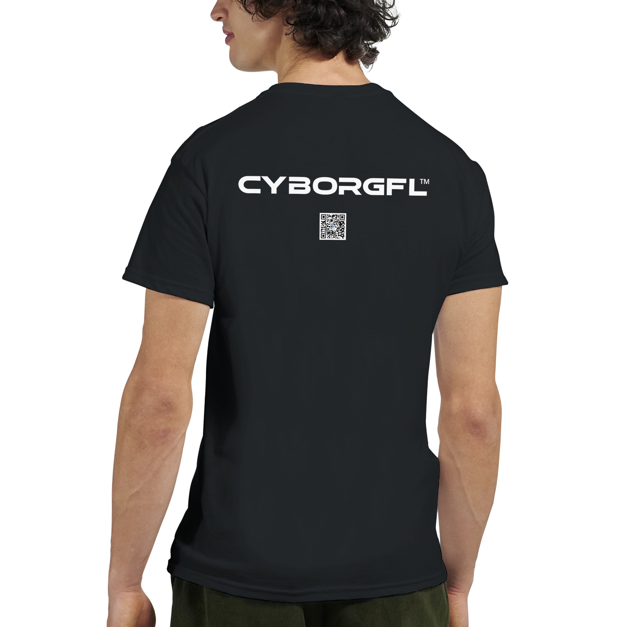 - Back: Signature CYBORGFL™ logo + QR code print
