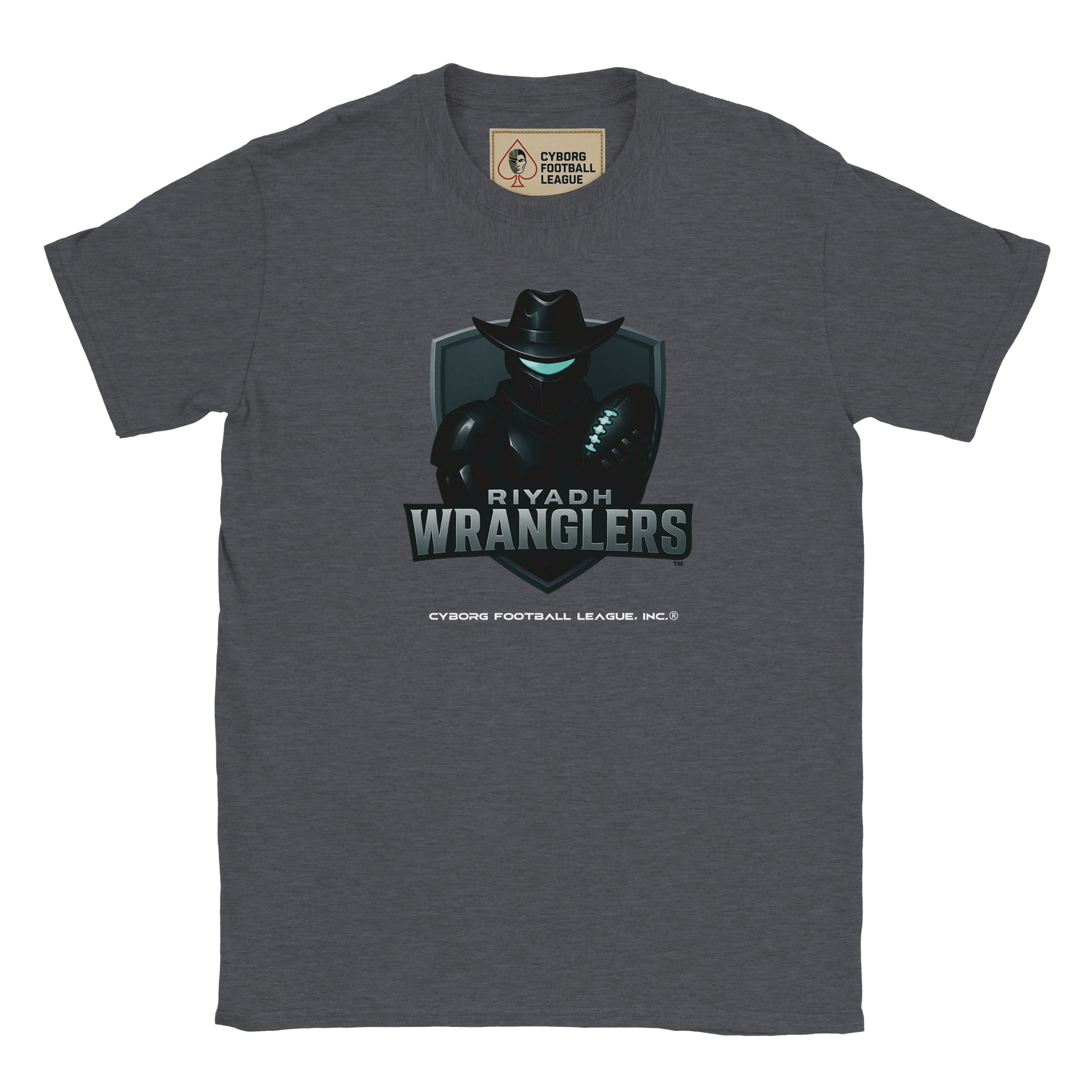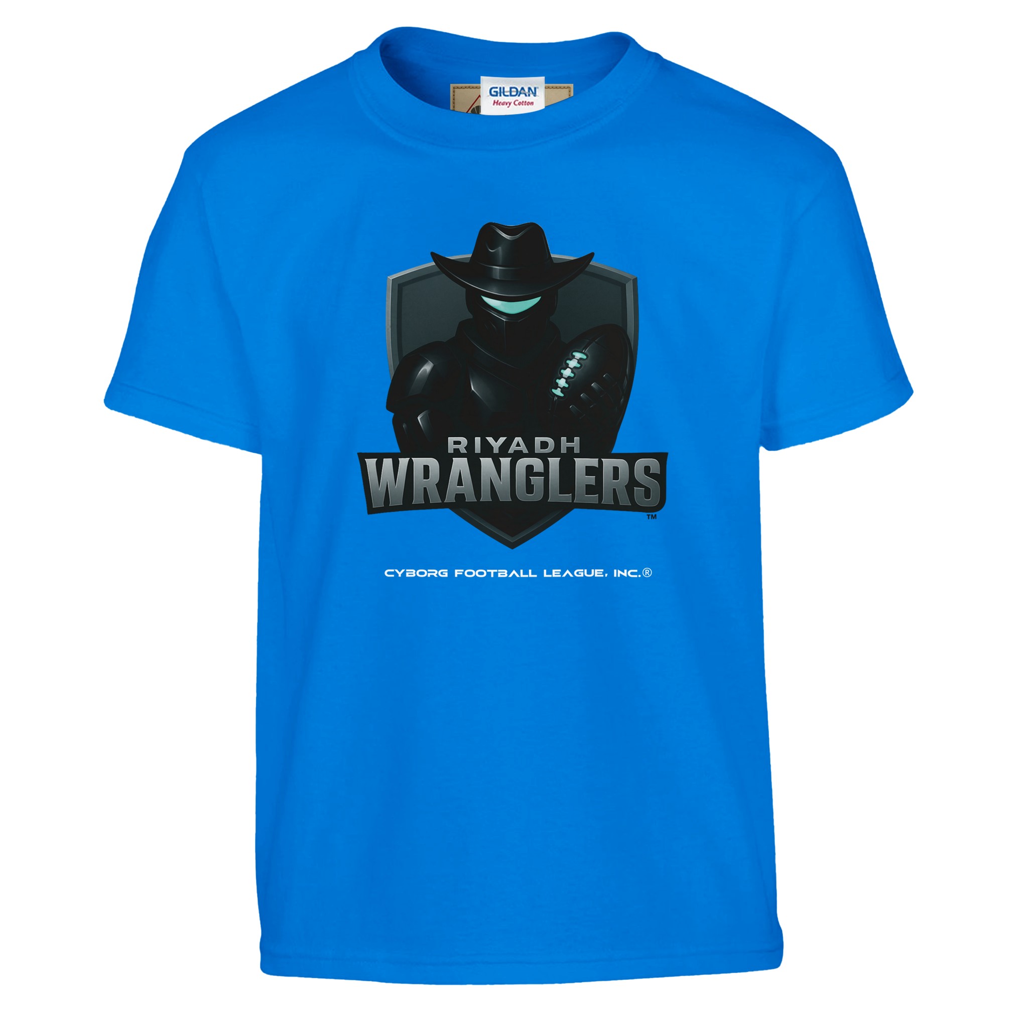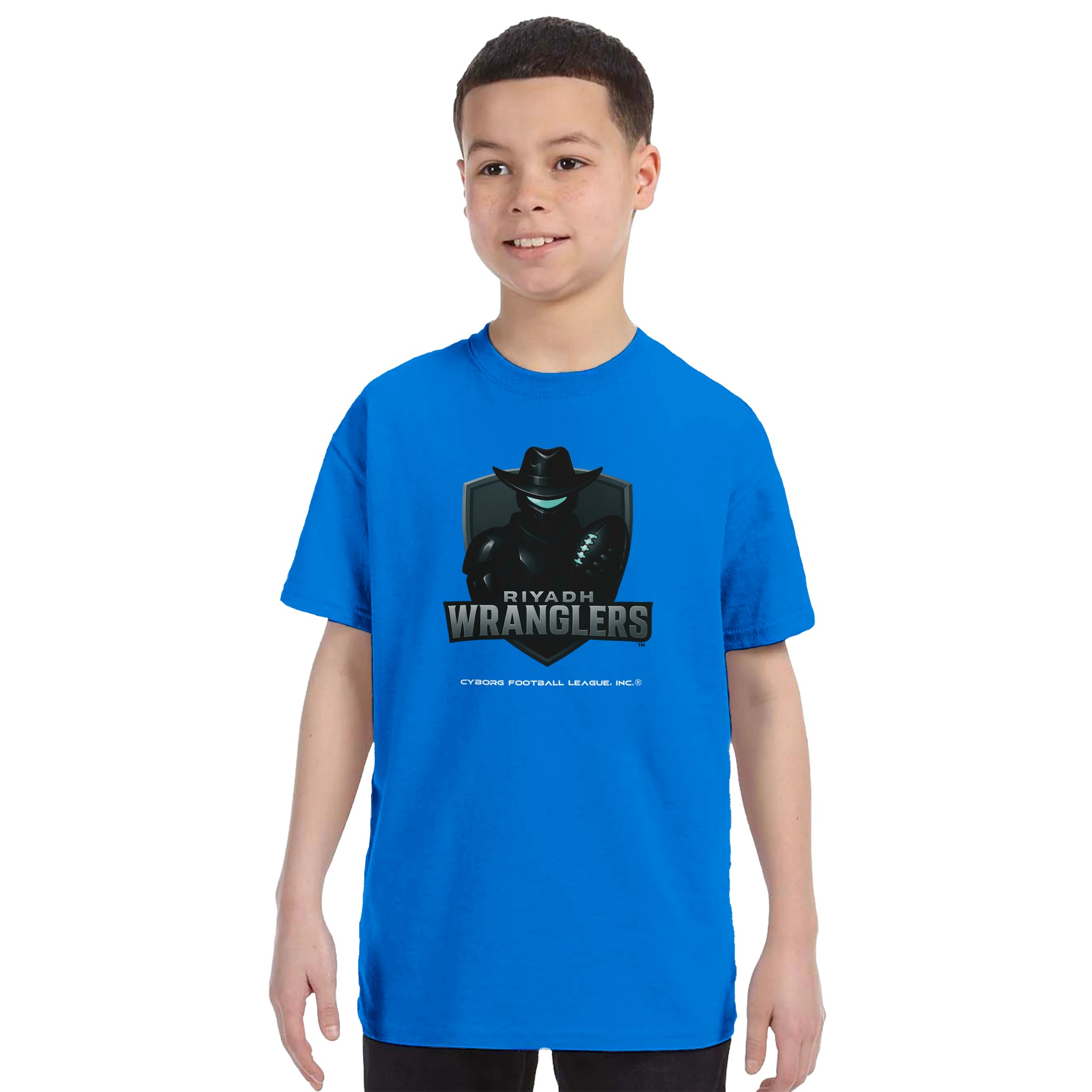 A bold kids tee featuring the Riyadh Wranglers™ emblem—built for young fans who play hard, think fast, and rep CyborgFL with pride.