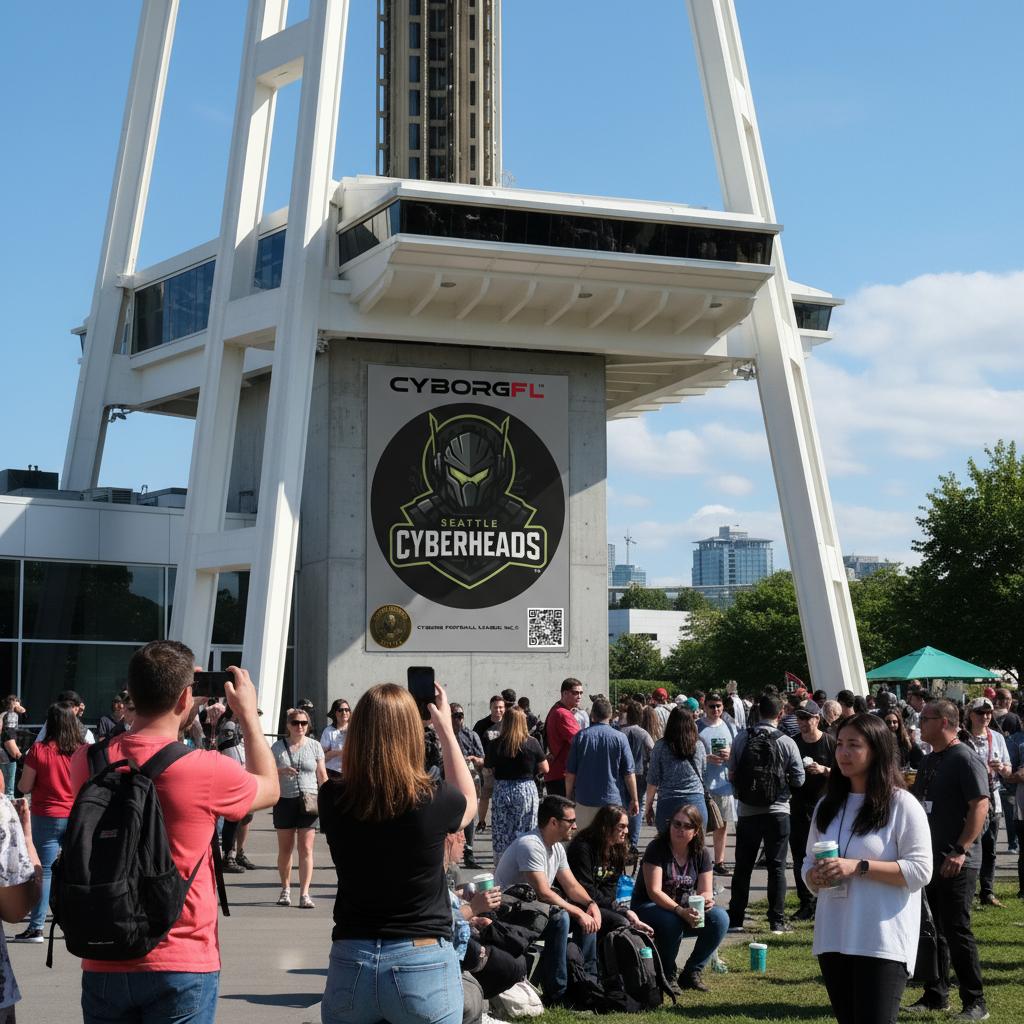 An official CyborgFL™ art poster featuring the seal of the Seattle Cyberhead™ — built for gamers, fans, and next-gen competitors.