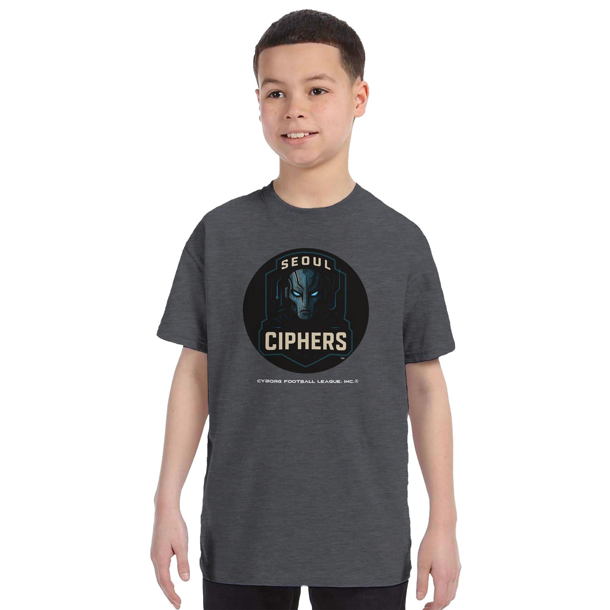 A bold kids tee featuring the Seoul Ciphers™ emblem—built for young fans who play hard, think fast, and rep CyborgFL with pride.